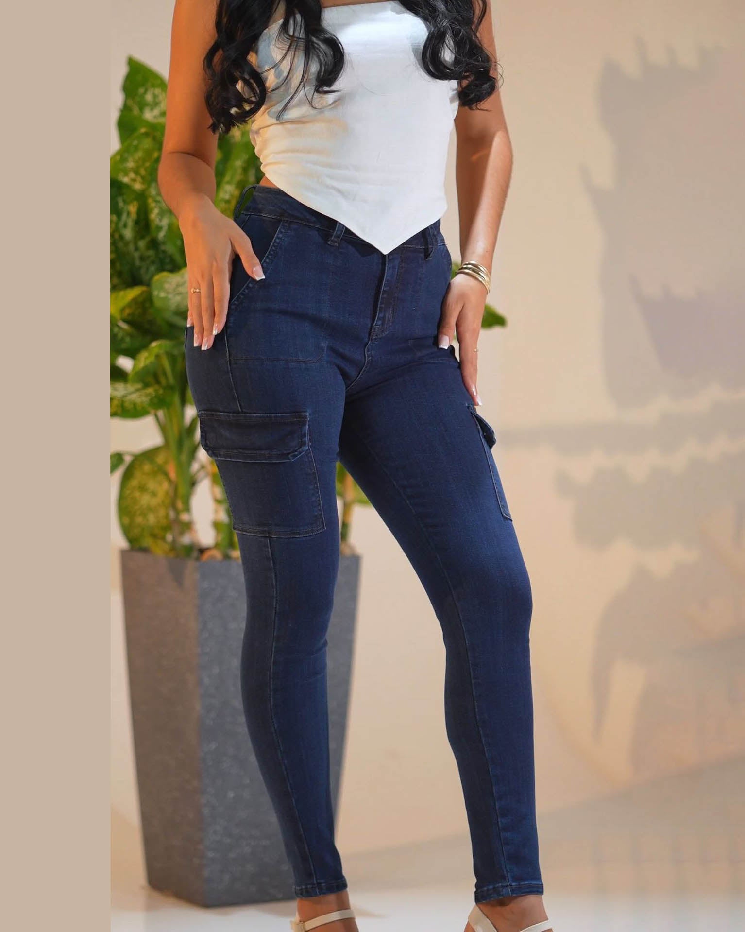 Dunkelblau-farbige Po-hebende Skinny Jeans
