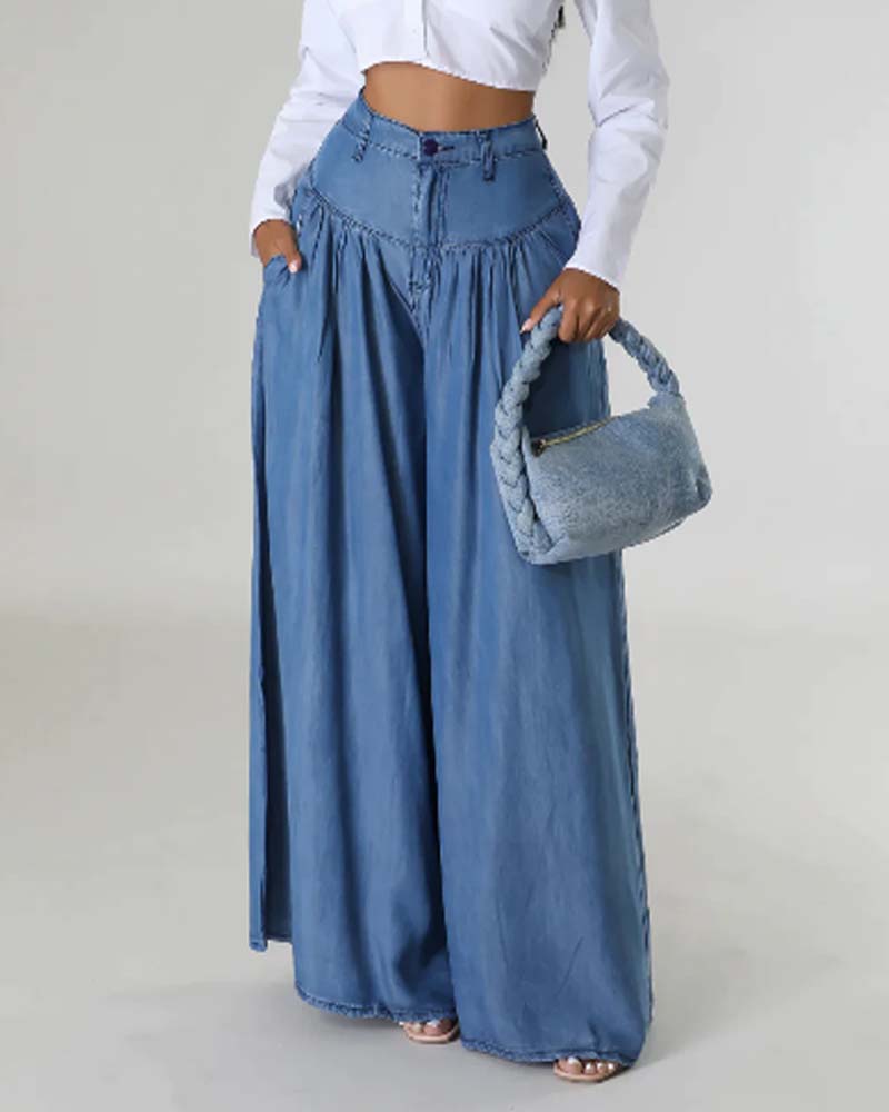 Einfarbige lange Hosen mit weitem ausgestelltem Bein