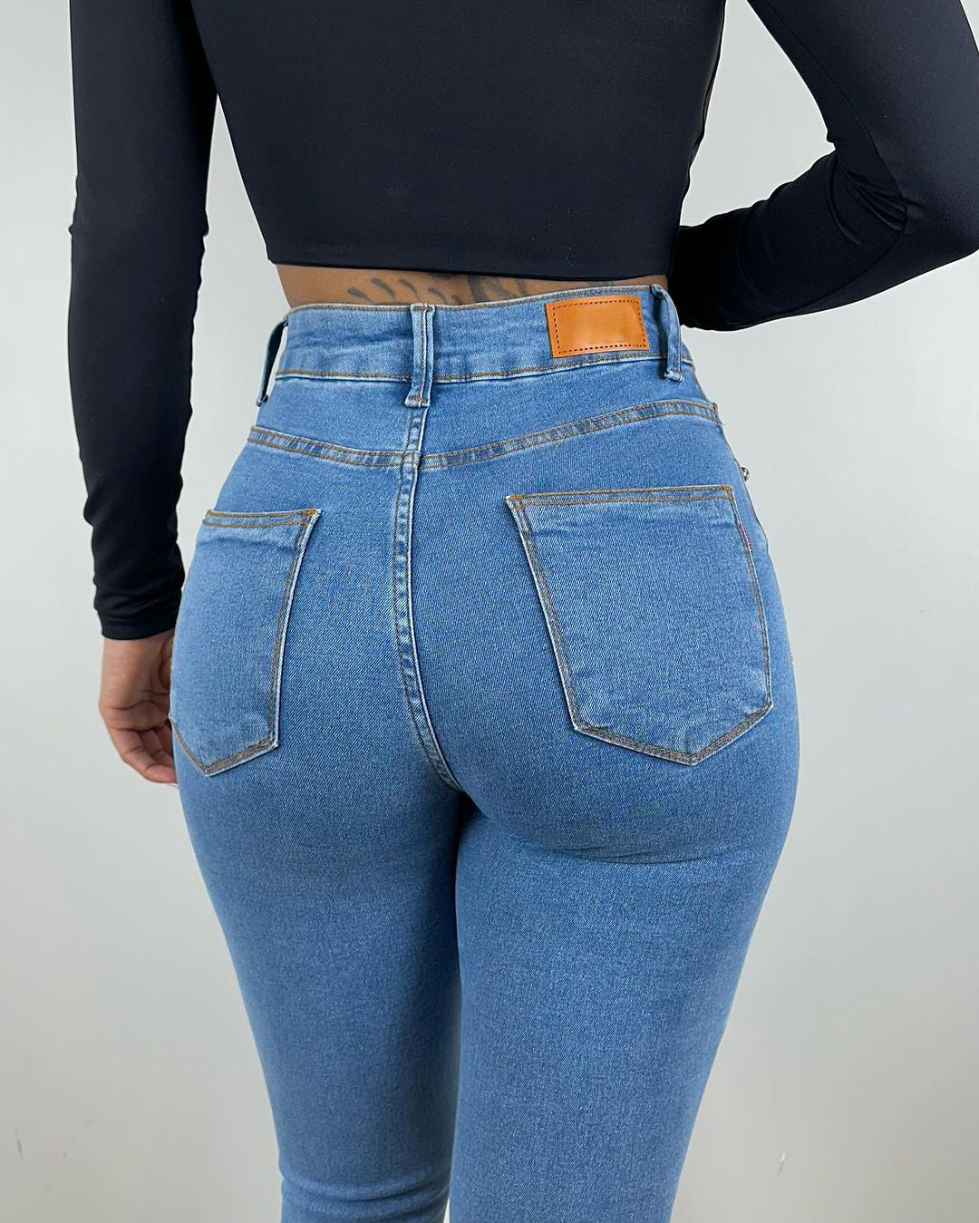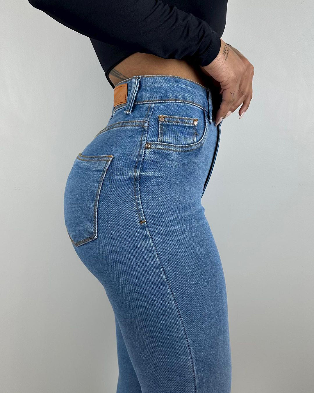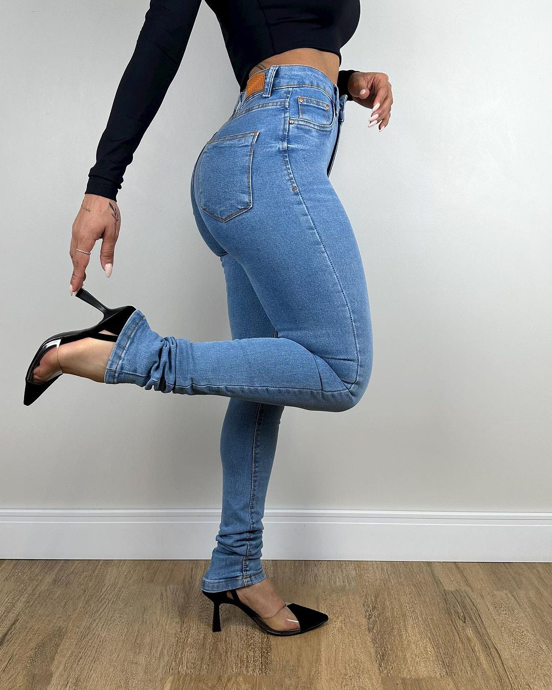 Hellblaue High-Waist Skinny-Jeans mit Booty-Lift-Effekt