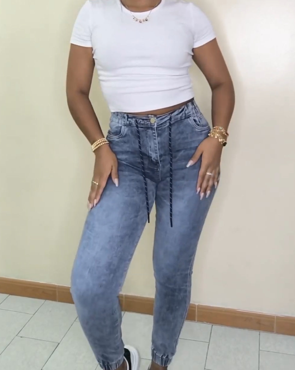 Hellgraue Stretch-Jeans mit Pfirsich-Gesäßformung