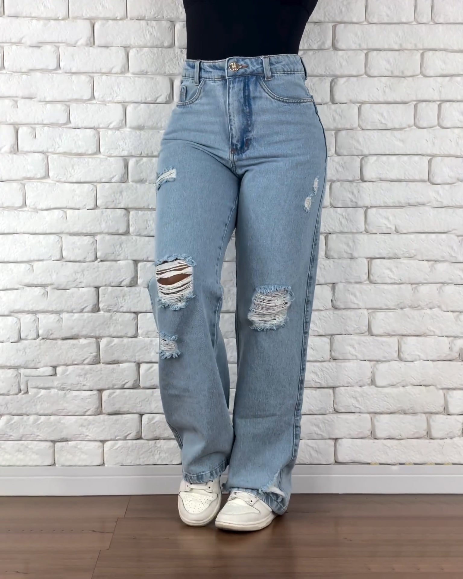 Hochtaillierte Ripped Gerade Weite Jeans