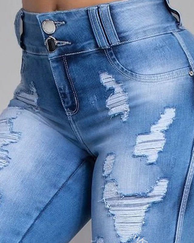 Erleben Sie die Magie einer schmeichelhaften Silhouette mit unseren Zerrissenen Schlankmachenden Stretch-Jeans. Diese innovative Denim-Kreation kombiniert einen schlanken, stretchigen Schnitt mit cleveren Slimming-Details, um Ihre Figur optimal in Szene zu setzen.