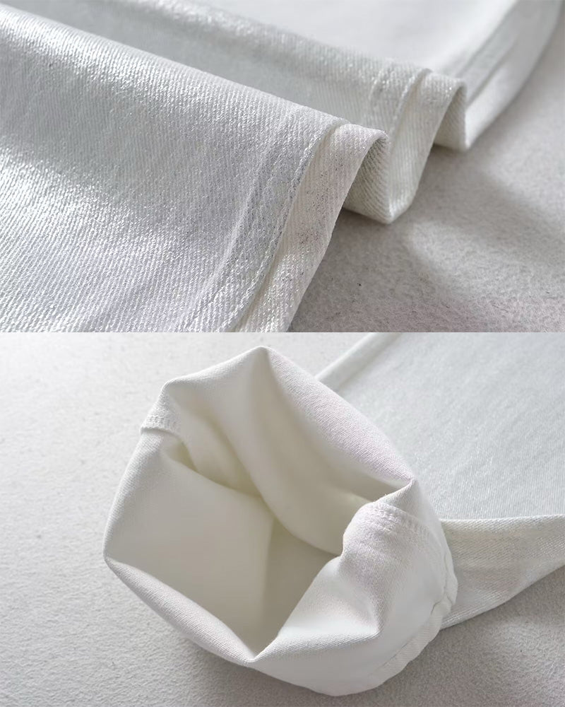 Weiße Metallic Baggy Jeans